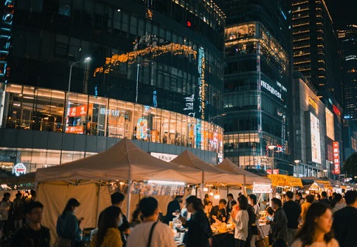 最近节日客流叠加LV巨轮“路易号”的流量,让吴江路更加闹猛。前几天夜晚,我竟发现它也有了古老的露天市集。东北烤串、朝鲜打糕、酱香小土豆、手工酸奶、沙茶鱿鱼、拇指生煎包摊铺云集,游人如织。